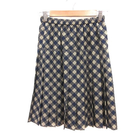- ノーブランド プリーツスカート ひざ丈 ギンガムチェック 9 青 ブルー ベージュ /MS レディース