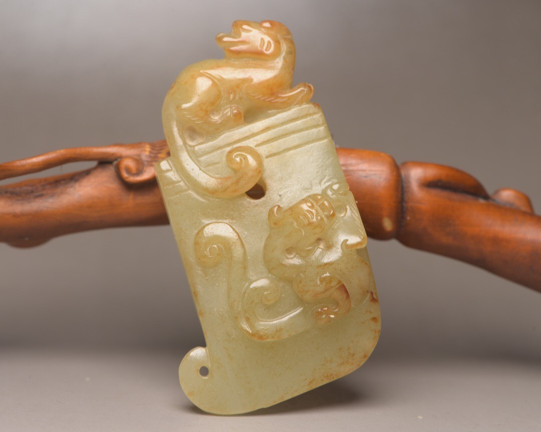 - 【仁】『和田玉製・細密彫・府上有龍・置物・賞物』極細工 古賞物 中国古玩 古美術 古美味