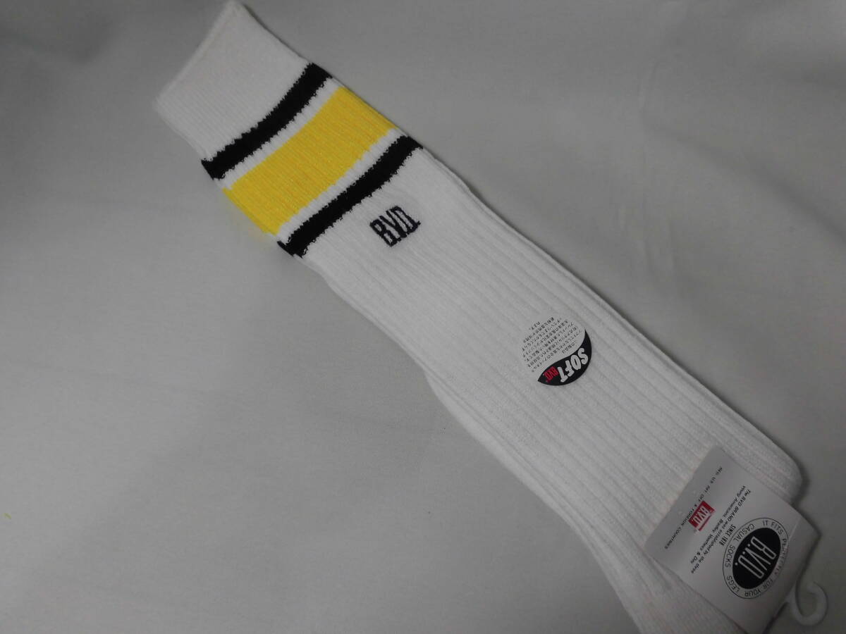 > レトロ BVD ラインソックス ハイソックス スポーツ カジュアル 靴下 バレー バスケ スクール イエロー 3628