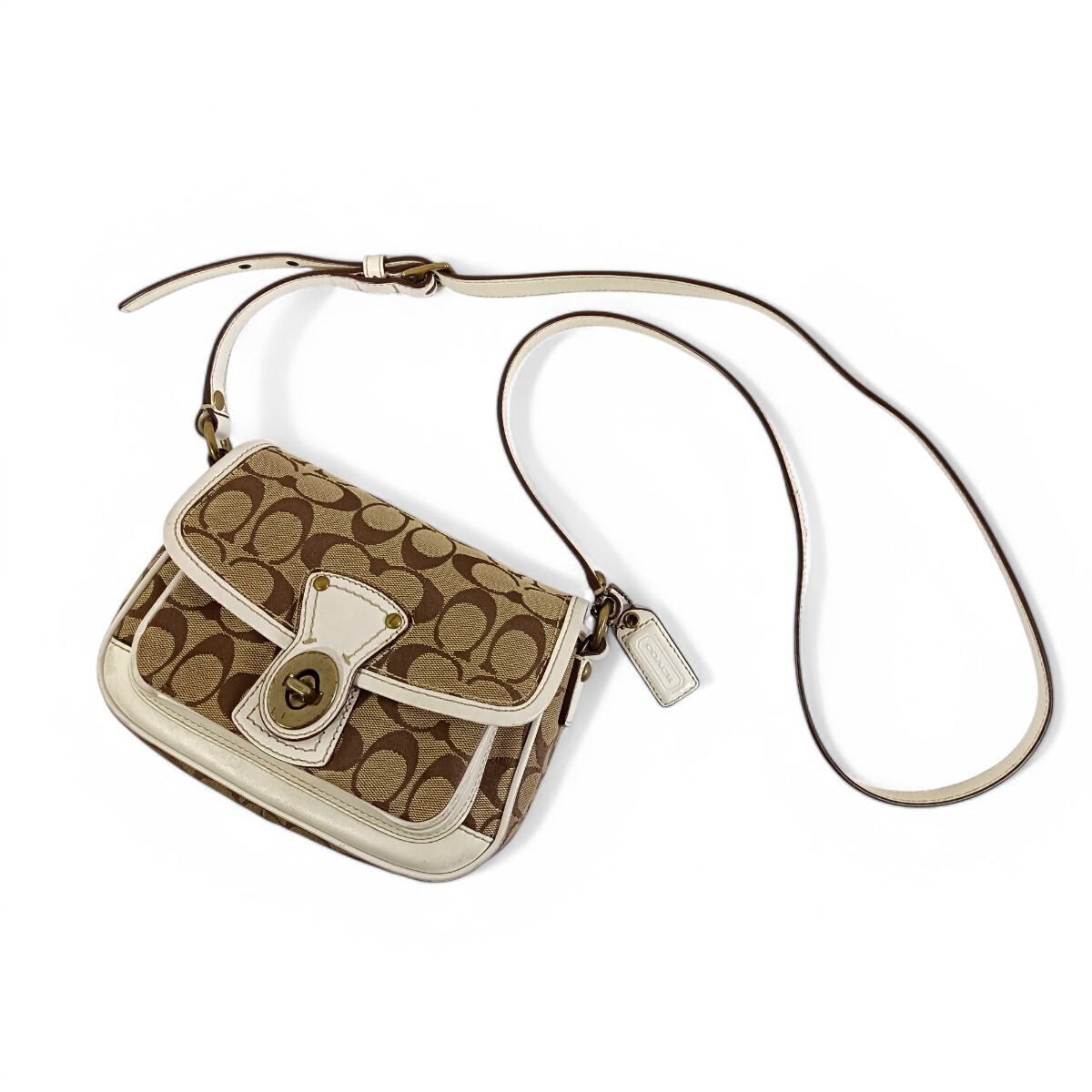 - 正規品 コーチ COACH ショルダーバッグ シグネチャー 斜め掛け 白 クロスボディ ターンロック ベージュ ホワイト 小さめ 鞄 ポシェット