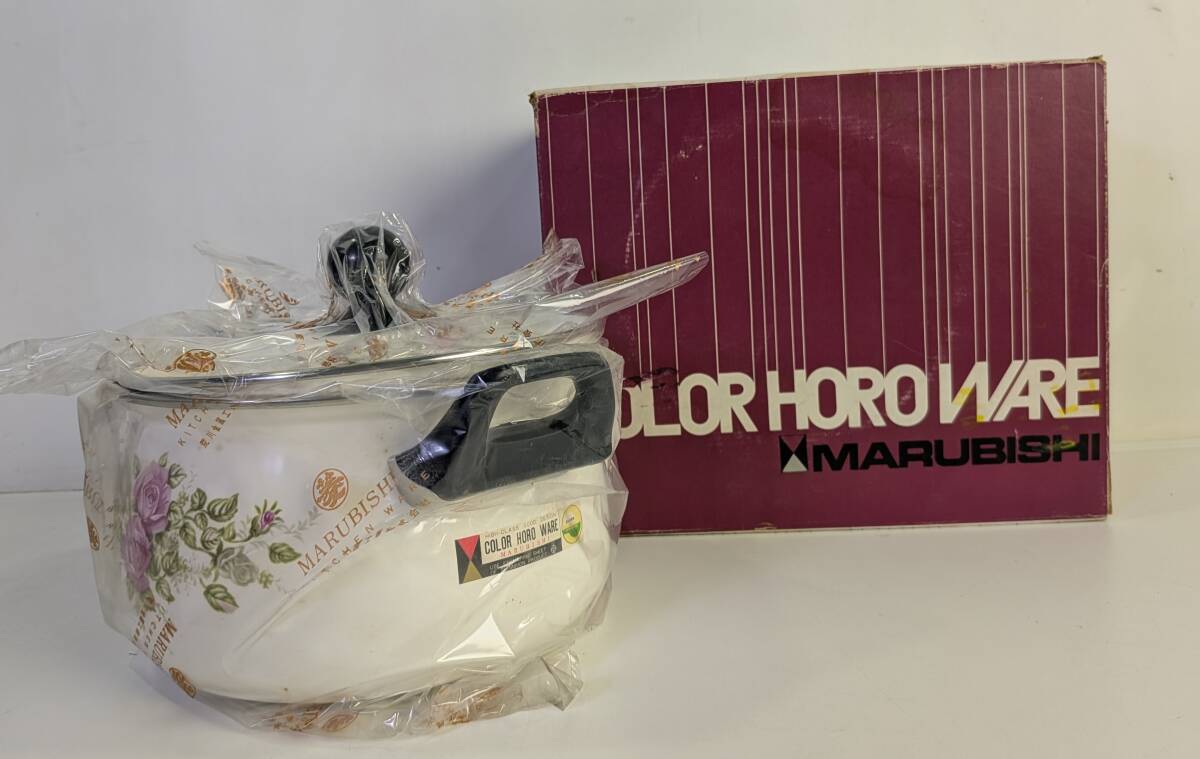 > □[昭和レトロ 未使用品]マルビシ MARUBISHI ホーロー鍋 22cm ローザー COLOR HOROWARE