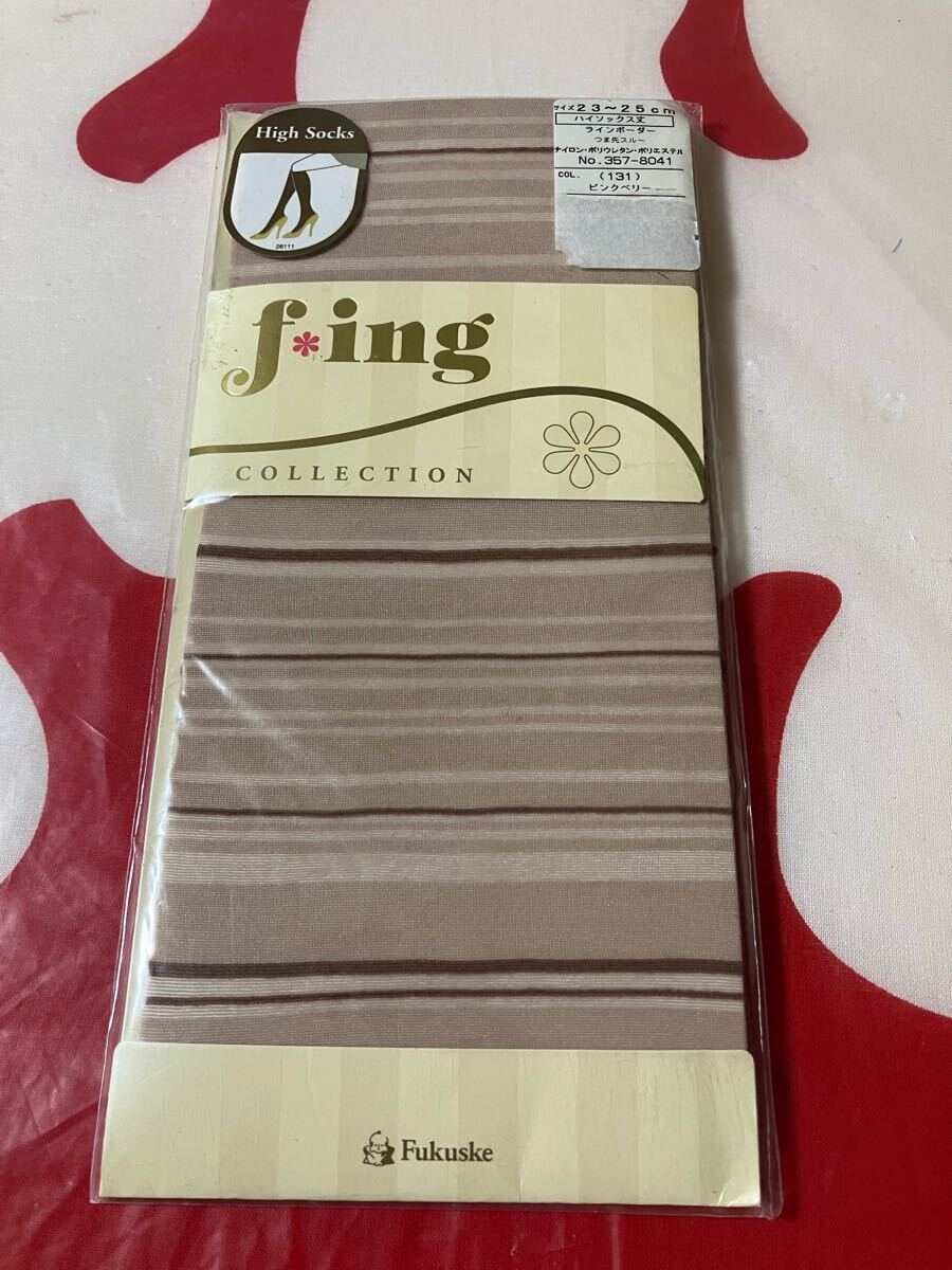 > fukuske f *ing collection high socks ハイソックス丈 ラインボーダー ピンクベリー 福助 ハイソックス 柄 デザイン