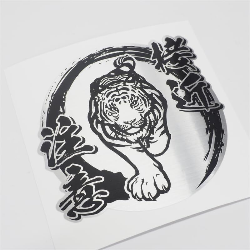 - (ヘアライン 15cm)接近注意ステッカー 和柄 トラ 虎【黒丸×黒文字】 高齢者 初心者 サイン シール 車用 トラック トラグッズ