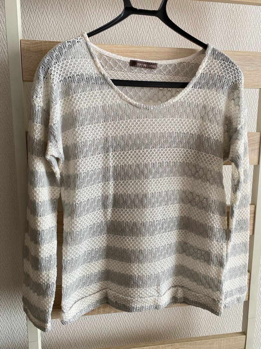 - 【送料無料】かぎ編みボーダーカットソー M ⑧