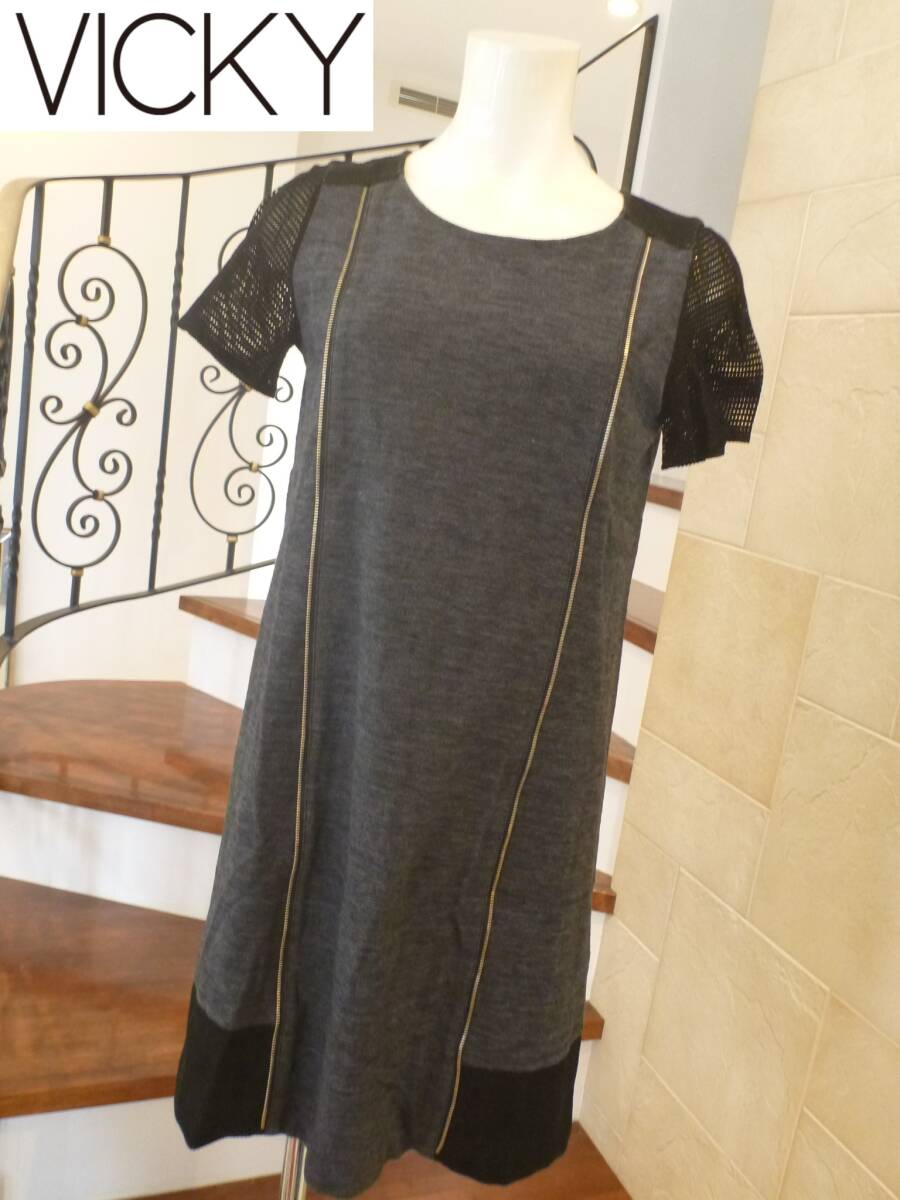 - 新品同様 VICKY ビッキー★黒×グレー 半袖 ワンピース 1 M相当