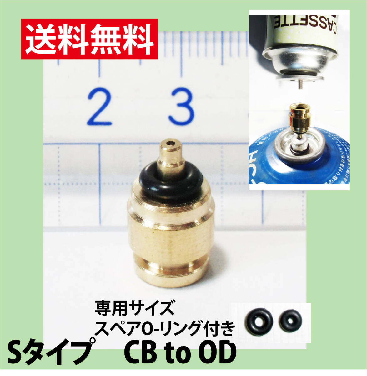 - 送料無料!!ガスチャージアダプターS型 CB缶からOD缶にガス補充 インナー、アウターOリング装着済 スペアOリング付き 1 個