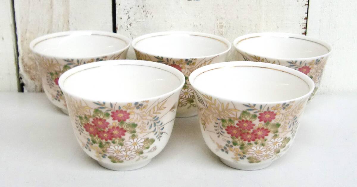 > 桂由美 YUMI KATSURA *未使用保管品 *YAMAKA *お茶呑茶碗 *5点まとめ セット 5客 *創作華窯 花柄 *共箱付き