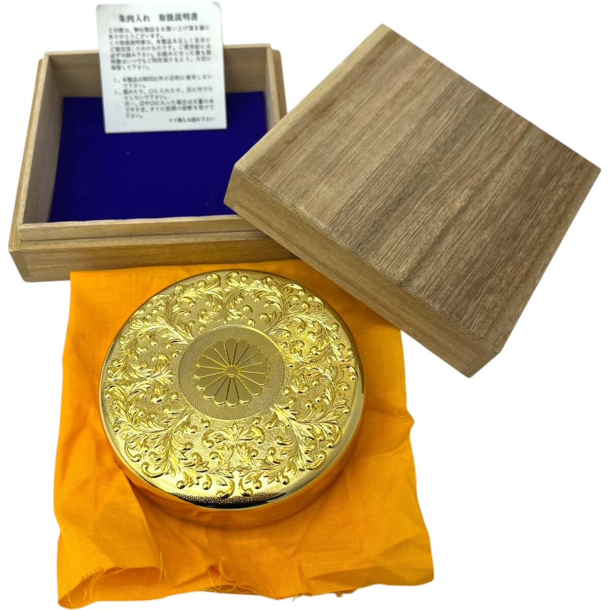 - 朱肉入れ 菊紋 24KGP ゴールド 金 ケース 桐箱 24金 メッキ 家紋 朱肉 印鑑用品 叙勲記念