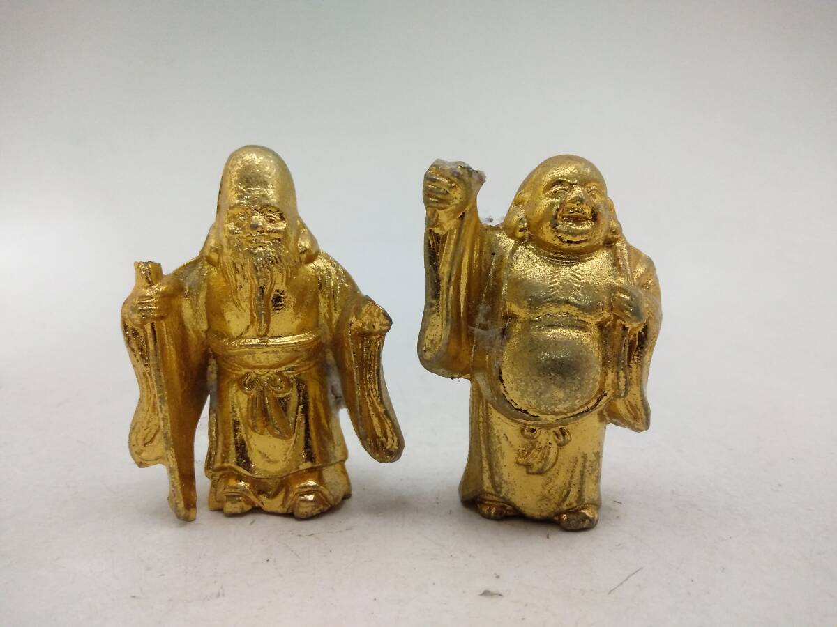 - 1024-0001 金属工芸◆七福神 置物 金色 ◆ 布袋尊 寿老人 縁起物 gold color 非鉄金属製