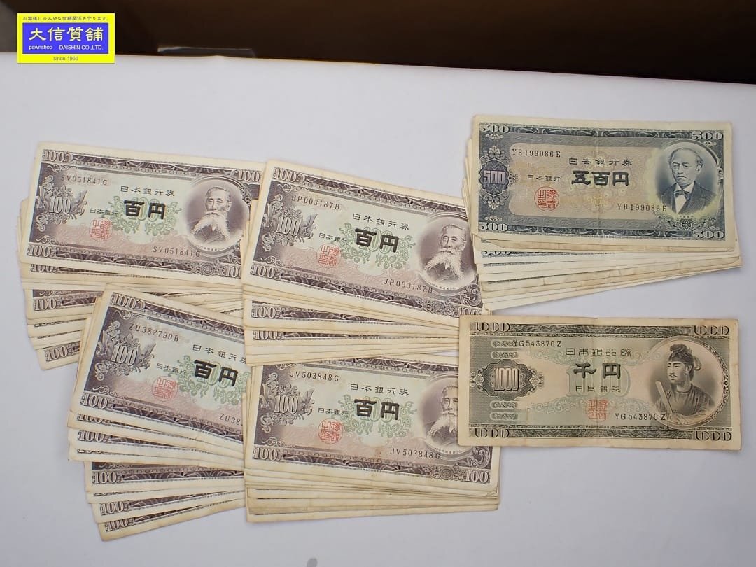 - 旧札 日本銀行券B号 板垣退助100円札/39枚 岩倉具視500円札/10枚 聖徳太子 1000円札/1枚 計50枚 中古B 【送料無料】 D-2438