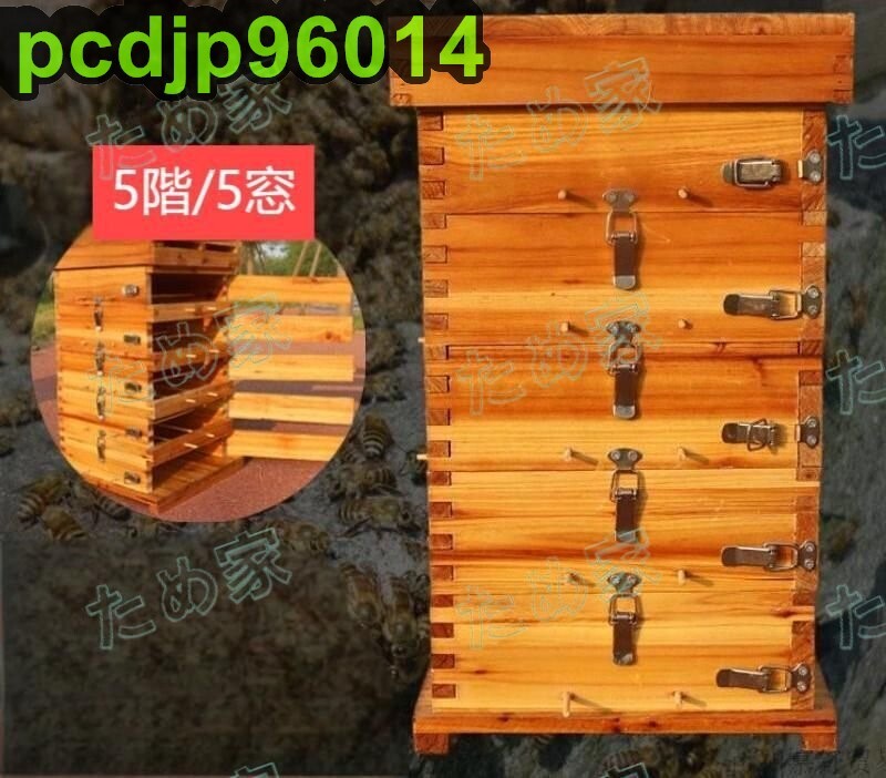 - 5階 蜜蜂巣箱 ミツバチ 巣箱 重箱式 養蜂箱 杉材 蜂ハイブ 格子箱 煮蝋 蜜蜂飼育箱 巣枠不要 自然造蜜 防水性と防食性5窓