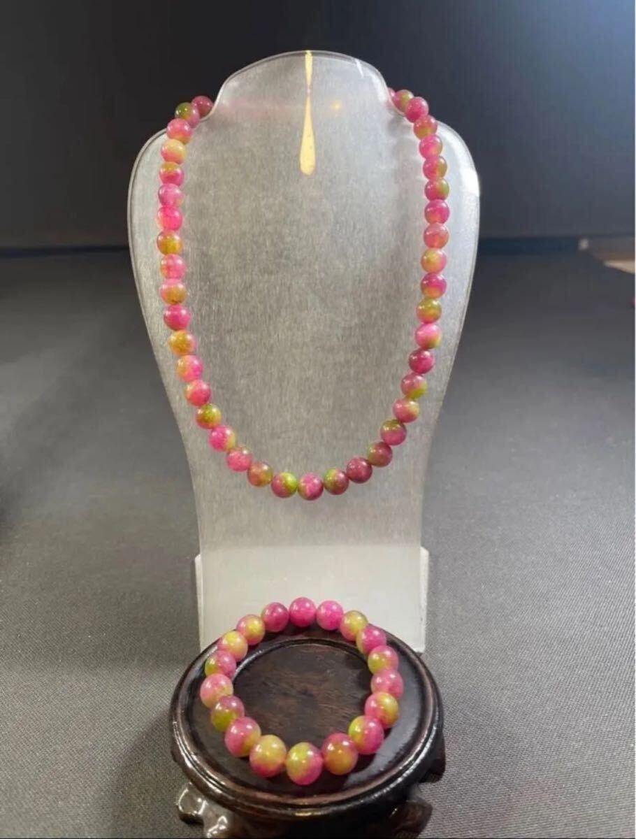 - ウォーターメロントルマリン ネックレスとブレスレット 二点セット約8mm