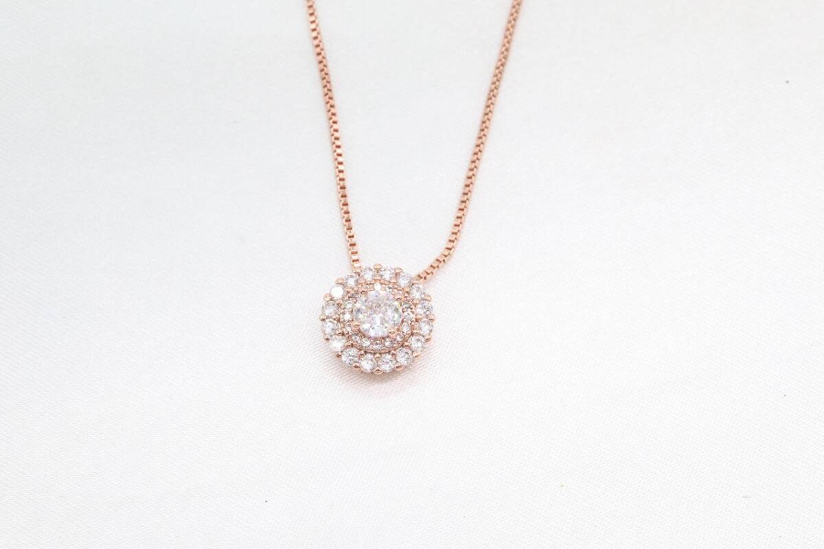 - 【Ki163】ラインストーン サークル ビジュー ネックレス ピンクゴールド 未使用保管品【送料全国一律185円】