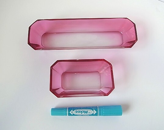 - 【G1903】ヴィクトリアン 金赤 ガラス 化粧皿ペア クリスタル ガラス