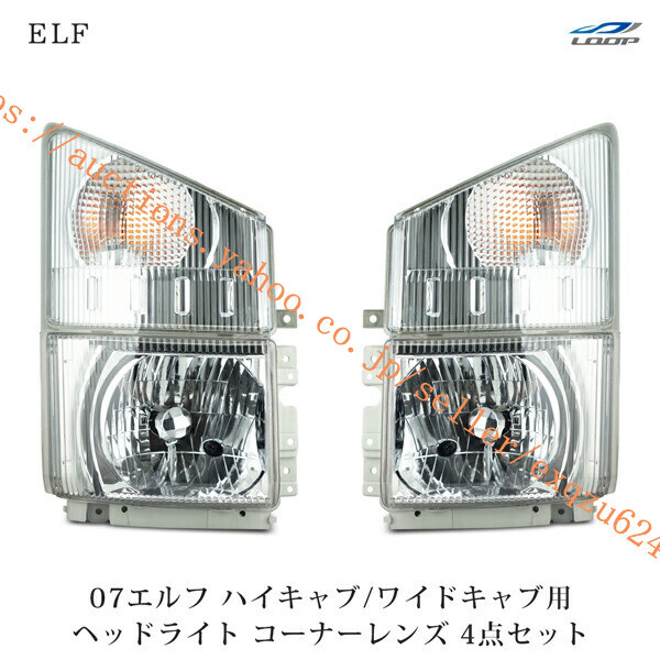 > いすゞ 07 エルフ ハイキャブ ワイドキャブ用ヘッドライト コーナーレンズ セット H19.1~el-021-022