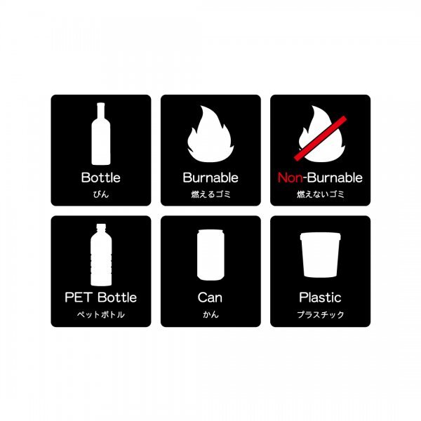 - ゴミ 分別 ステッカー 6枚セット ブラック W45mmxH50mm マットラミ 新品 ゴミ箱 シール 屋外OK 燃えるごみ 燃えないごみ ペットボトル 缶