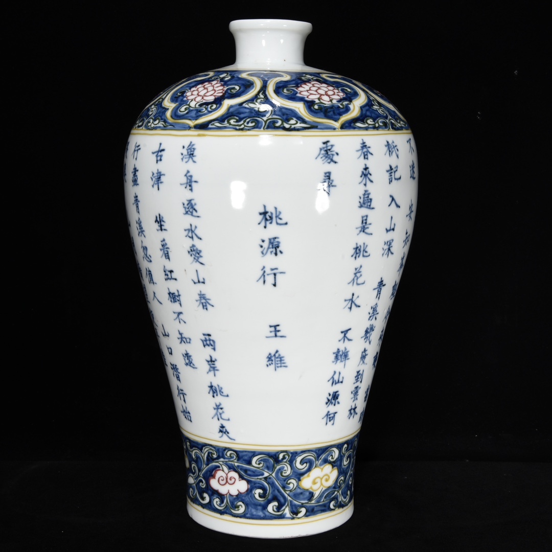 - 唐物 明 永楽年製 青花 題詩紋 梅瓶 陶芸 磁器 古陶磁器 中国美術品 時代物 D63