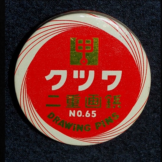- ●2286●昭和レトロパッケージ ◆ 「” クツワ 二重画鋲 ” ブリキケース 」 中身入りの未使用品 ◆ レトロなピルケースに!