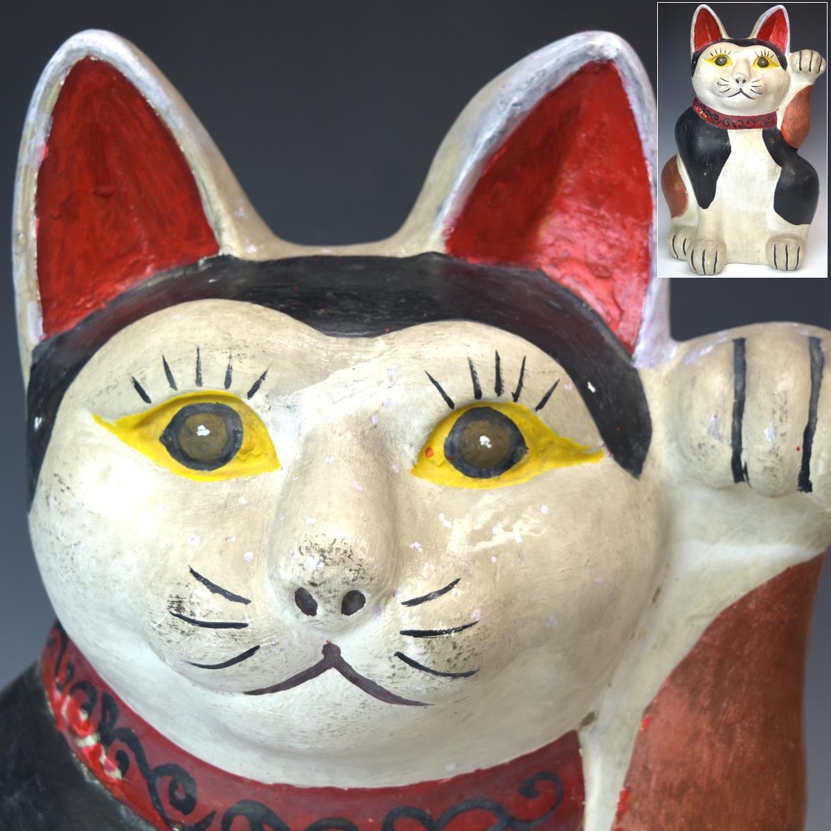- 【趣楽】 時代 三河系 招き猫 高さ53cm 重量5,6kg 三毛猫 I2131