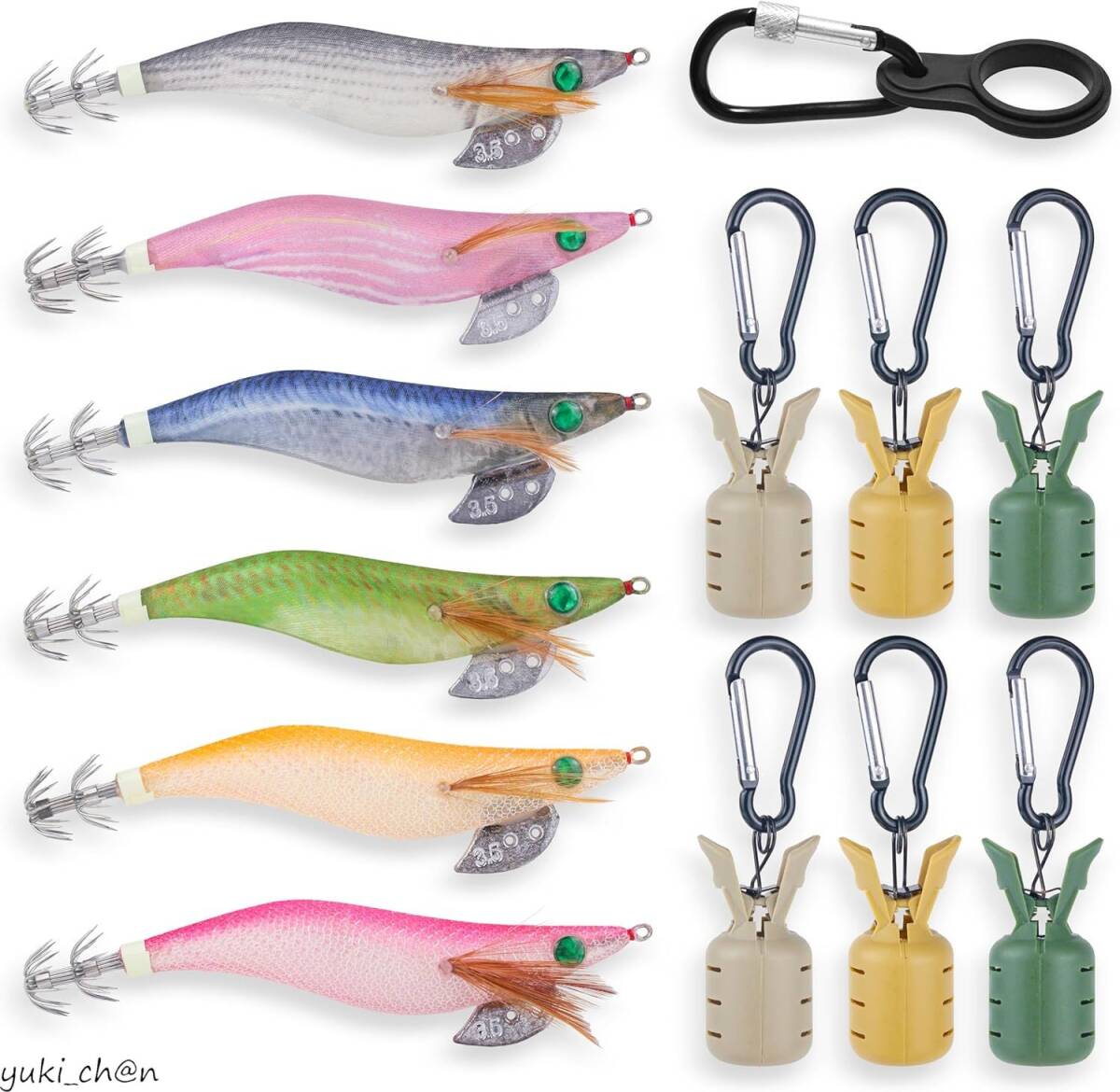 - エギルアー 3.5号 6色 6本入り 135mm 19g エギ釣りルアーセット エギイカ釣全身夜光 イカ タコ専用 エギカバー
