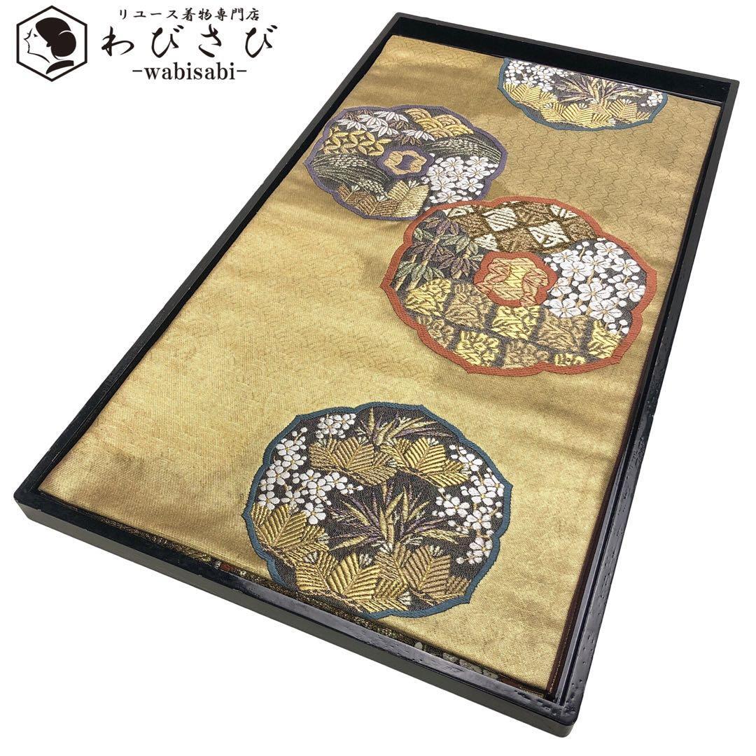 - 袋帯 岩井友見創作 九宝吉祥織 花柄模様 金色 O-4864 着物 きもの kimono 和服 和装 中古 リサイクル着物 【送料無料】