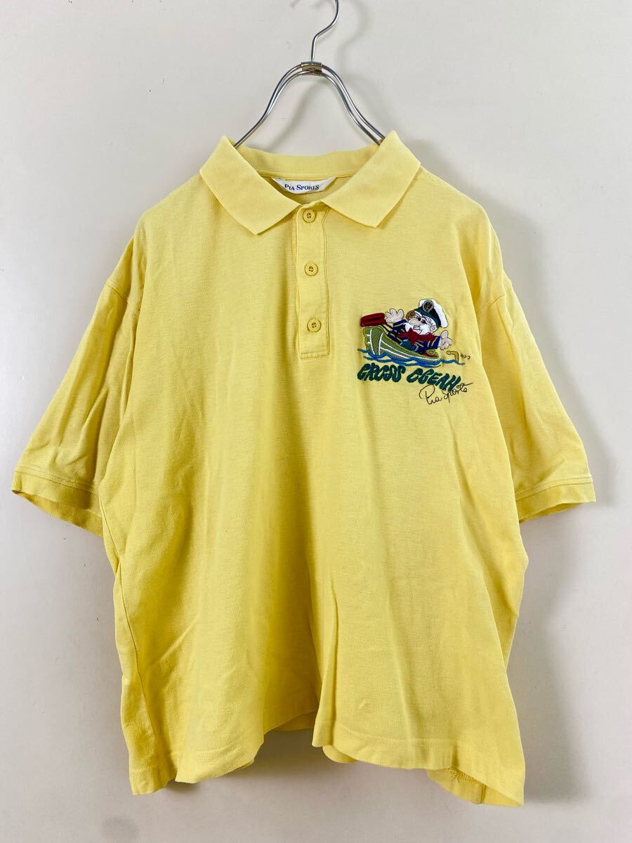 > ● PIA SPORTS キャプテン刺繍 ポロシャツ イエロー サイズ4 (L~LL相当) ◆ 鹿の子 半袖 カットソー シャツ ピアスポーツ ◆W25 WいDE7-18