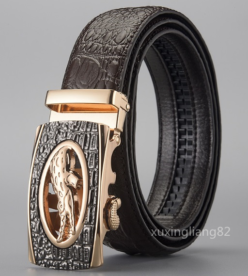 - 新販売 メンズ オートロック式 本革レザーベルト ビジネス風 ワニ柄 合金バックル 紳士ベルト カジュアル コーヒー
