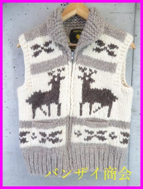 - 5230b25◆良品です◆カナダ製◆KISITAU トナカイ柄 フルジップ カウチンニットベスト/ジャケット/セーター/カーディガン/レディース/古着