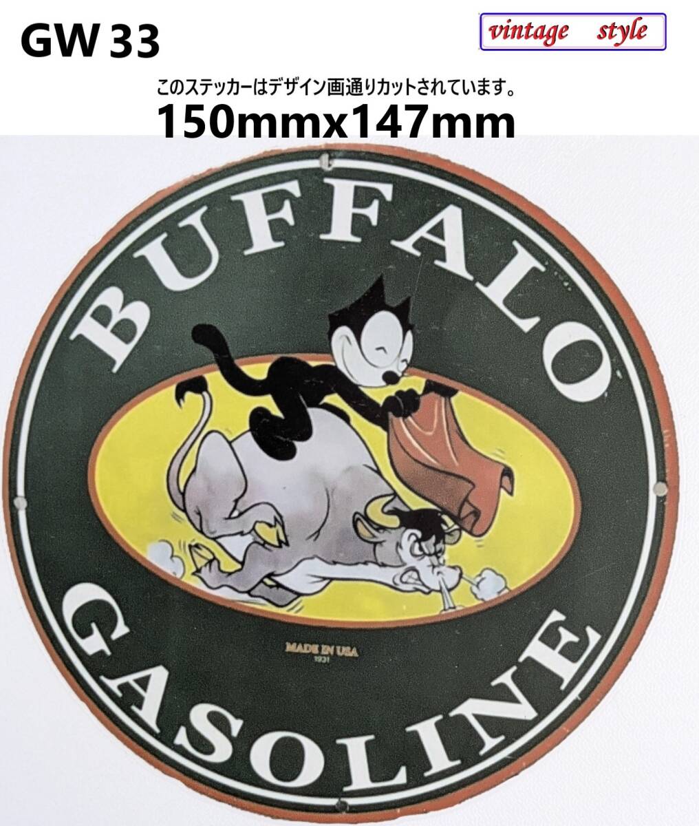 - GW33-5特価~15%OFF ヴィンテージスタイル バッファロー buffalo ガソリン モーターオイルステッカー ダメージ加工 ガレージ デカール