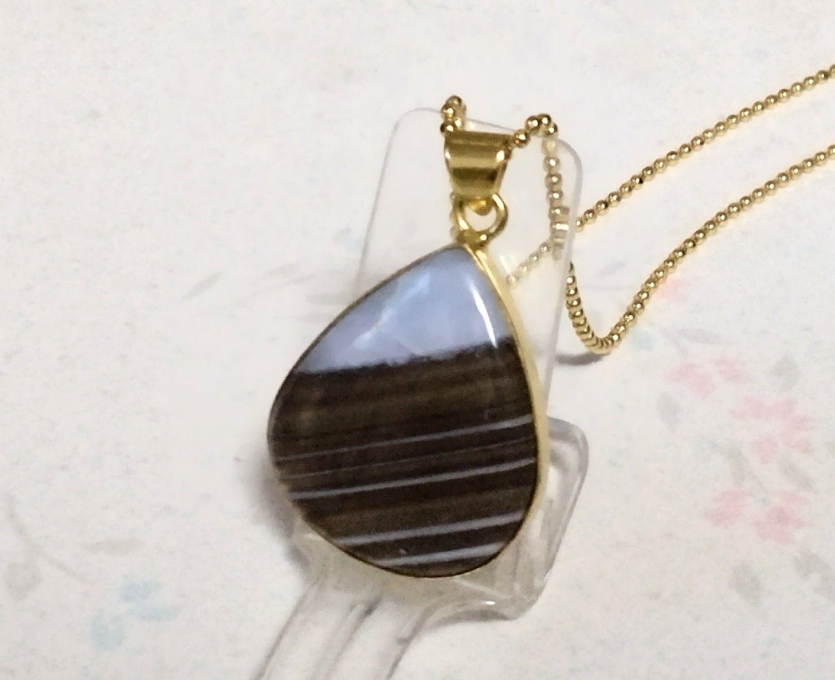 - ストライプ模様が素敵な18kGP仕上げの3Aブルーオパールカルセドニーのゴールドペンダント