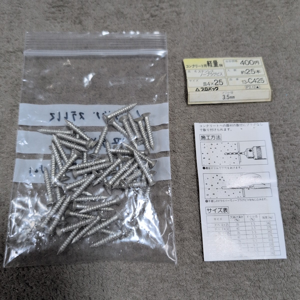 - ジャンク品/長期保管品/中古品/WAKAI/若井産業/13-C425/ステンレス/ノープラグビス/皿4×25mm/1P約50本入り