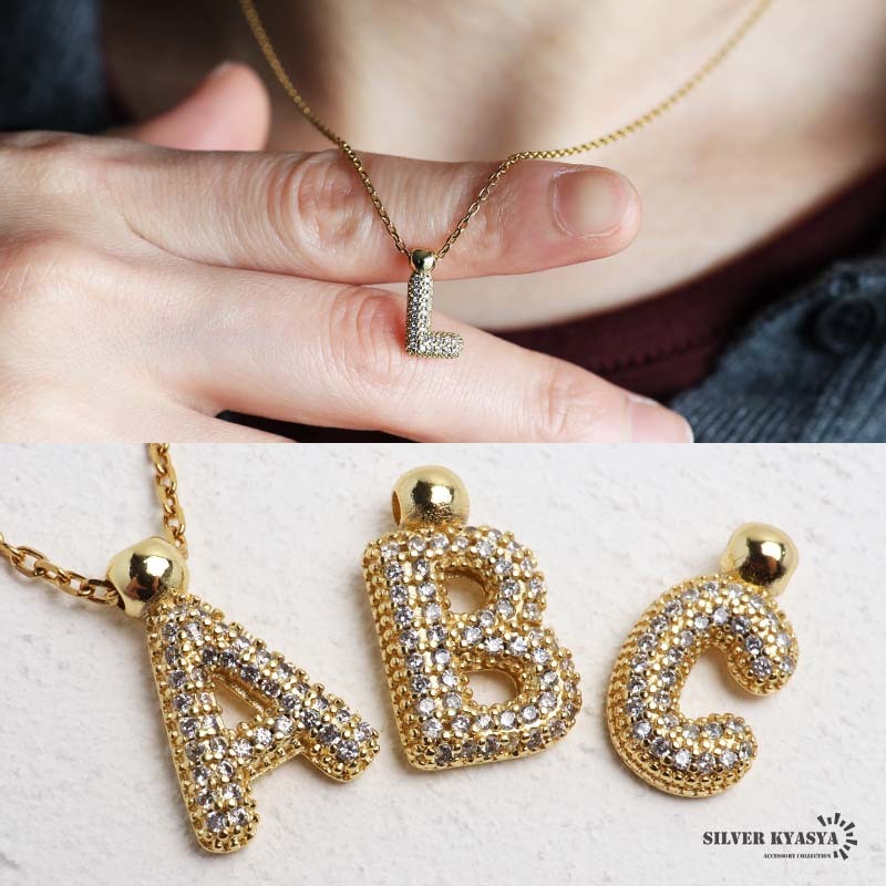 - (K、45cm) ステンレス イニシャルネックレス アルファベットネックレス シンプルネックレス あずきチェーン 極細