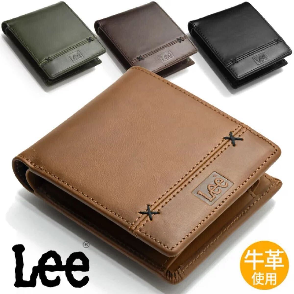 - リー Lee 二つ折り 財布 小銭入れあり クロスステッチデザイン リアルレザー 牛革 スリムウォレット メンズ レディース 0520695 グリーン