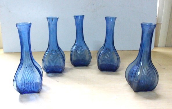 > ▲な-457 色ガラス 一輪挿し 又は とっくり 5個 昭和レトロ 梱包前大きさ/約 高さ15.5cm 幅6cm 口径3cm 重さ155g