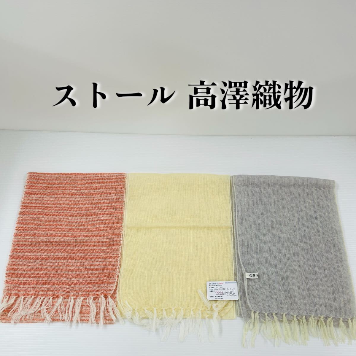 > 【ストール 高澤織物】未使用 カシミヤ100% 春 秋冬 スカーフ ショール 黄色 ラベンダー色 肩掛け 膝かけ 国産 日本製 防寒 #0263-672Z8