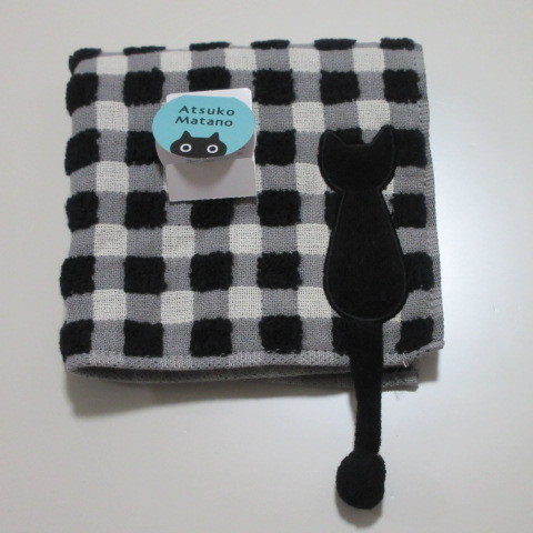 - マタノアツコ タオルハンカチ ネコ/ポコポコギンガムチェック 黒【Atsuko Matano】