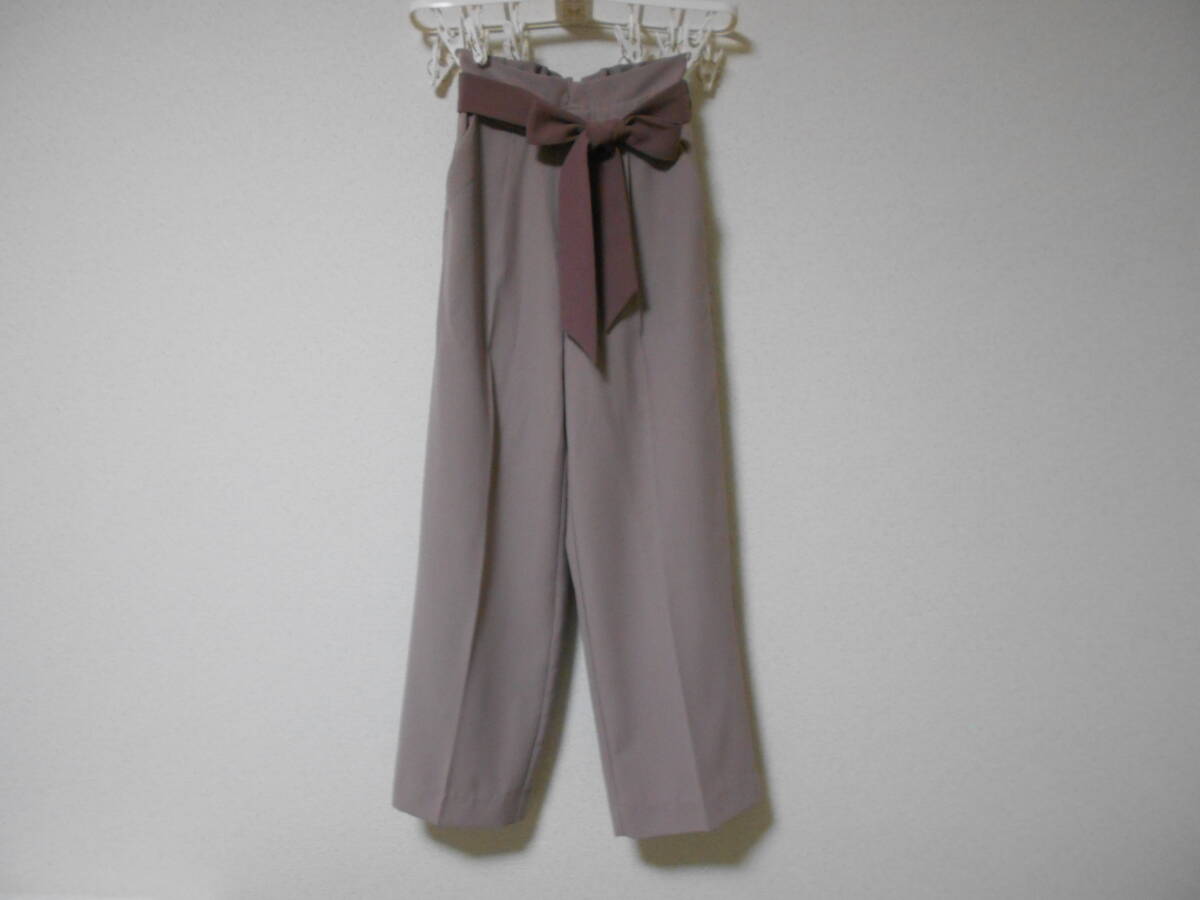 > LIP SERVICEリップサービス☆ピンクグレー薄紫くすみラベンダーのスラックスパンツ☆女性らしい♪さらさら素材☆かわいいリボン紐付☆Msize