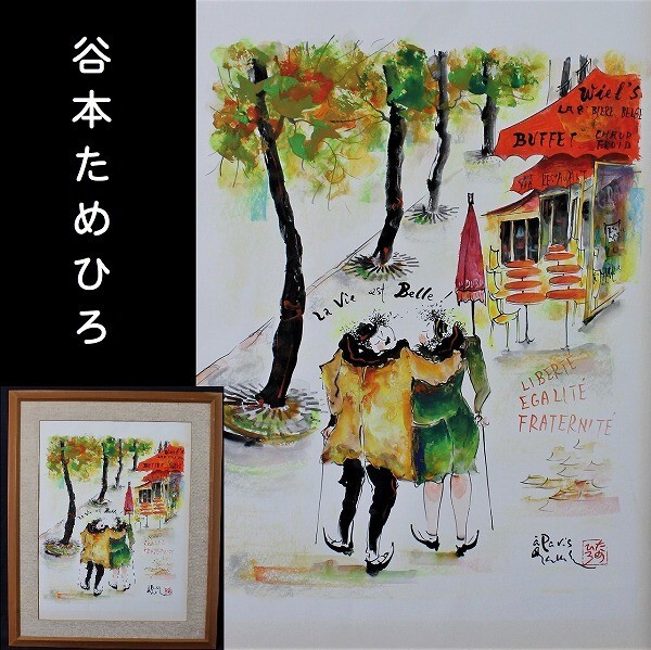 - 【真作】 谷本ためひろ 「パリ下町好日」 ガッシュ 水彩 裏書サインあり 共シール付 人気画家 D417