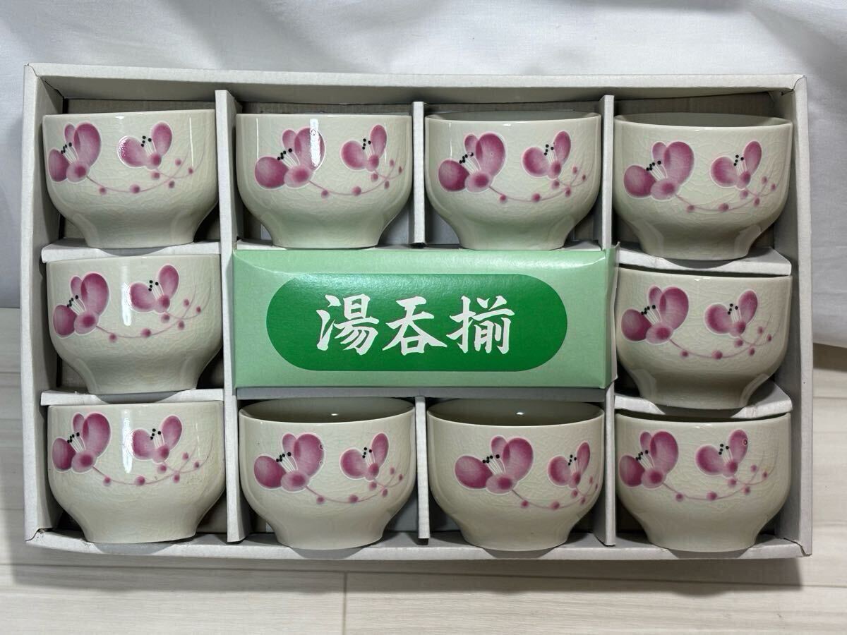 - 【箱付未使用 保管品】湯呑み10個 九谷焼 湯呑み 桜 梅 花柄 和風 カフェ