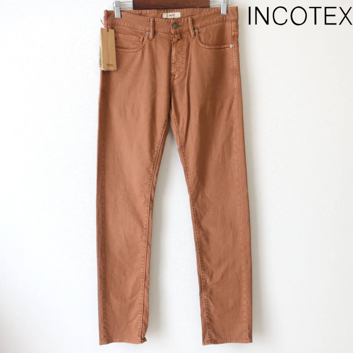 > 新品 未使用 INCOTEX インコテックス ジーンズ ストレッチ スリム パンツ チノパン パンツ トレンド ブラウン 茶色 メンズ W30 Mサイズ