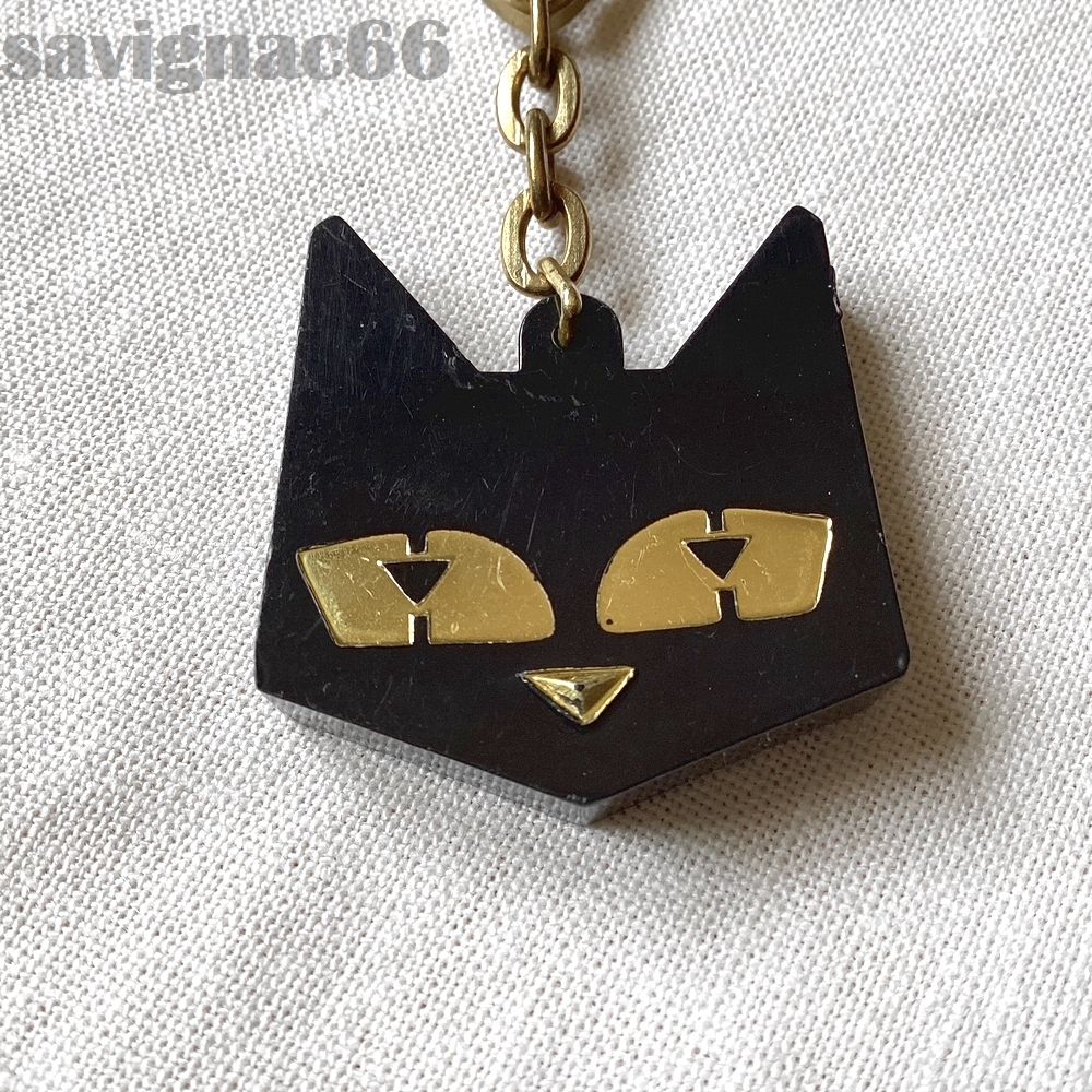 - 60年代 フレンチキーホルダー MARCHAL ネコ マーシャル 黒猫 角型★ 60s フランス vintage 旧車 当時物 USA バイク ヘッドライト 企業物