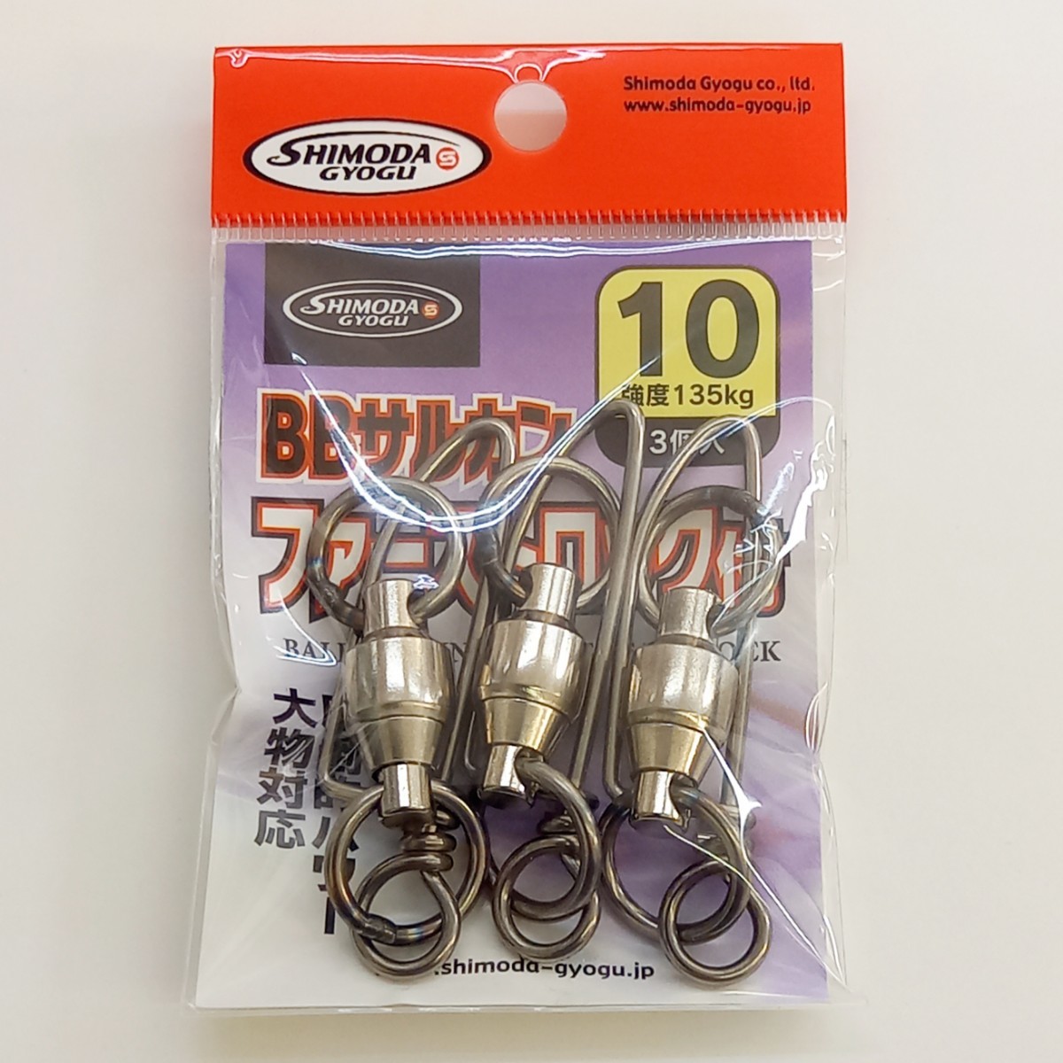 - BBサルカン・ファーストロック付 10号 3個入 スナップスイベル 下田漁具 ボールベアリング2R