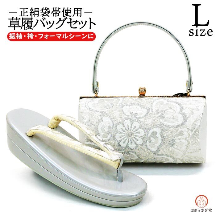 - Lサイズ 草履バッグセット 帯地 成人式 振袖 zb-099 卒業式 袴 銀 シルバー 白 ホワイト 白コーデ お洒落着物