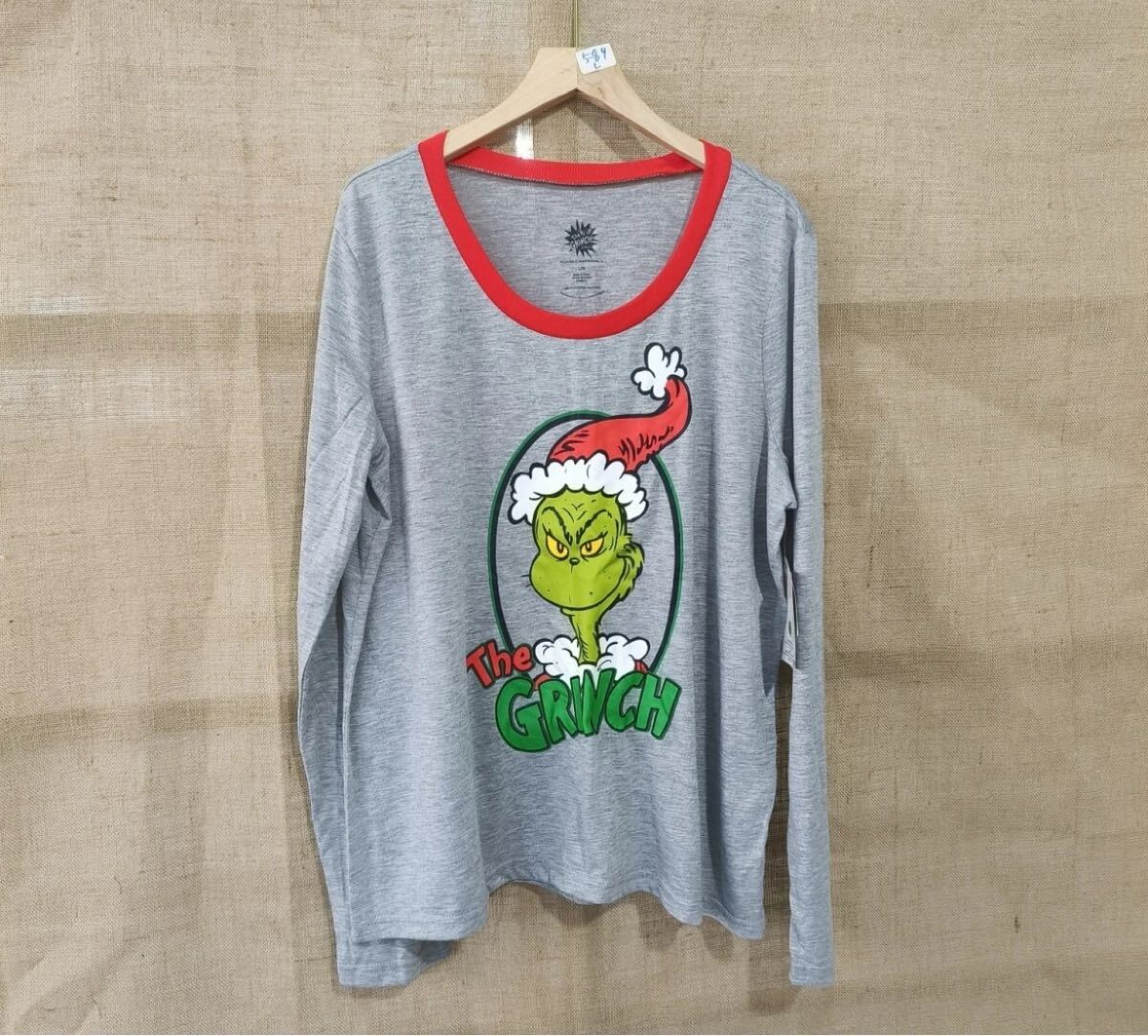 > 未使用USA限定!ピンクGRINCH☆Dr.Seuss☆グリンチ☆サンタクロース☆ドクター・スース、クリスマス.長袖ベストM Tシャツ レディース