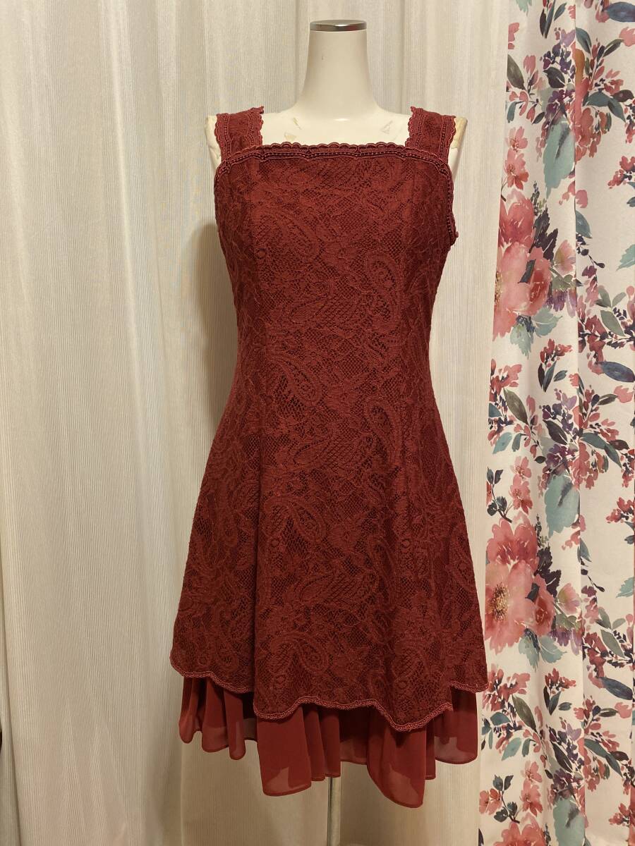 - INFINE レースとシフォンのショートドレス 赤