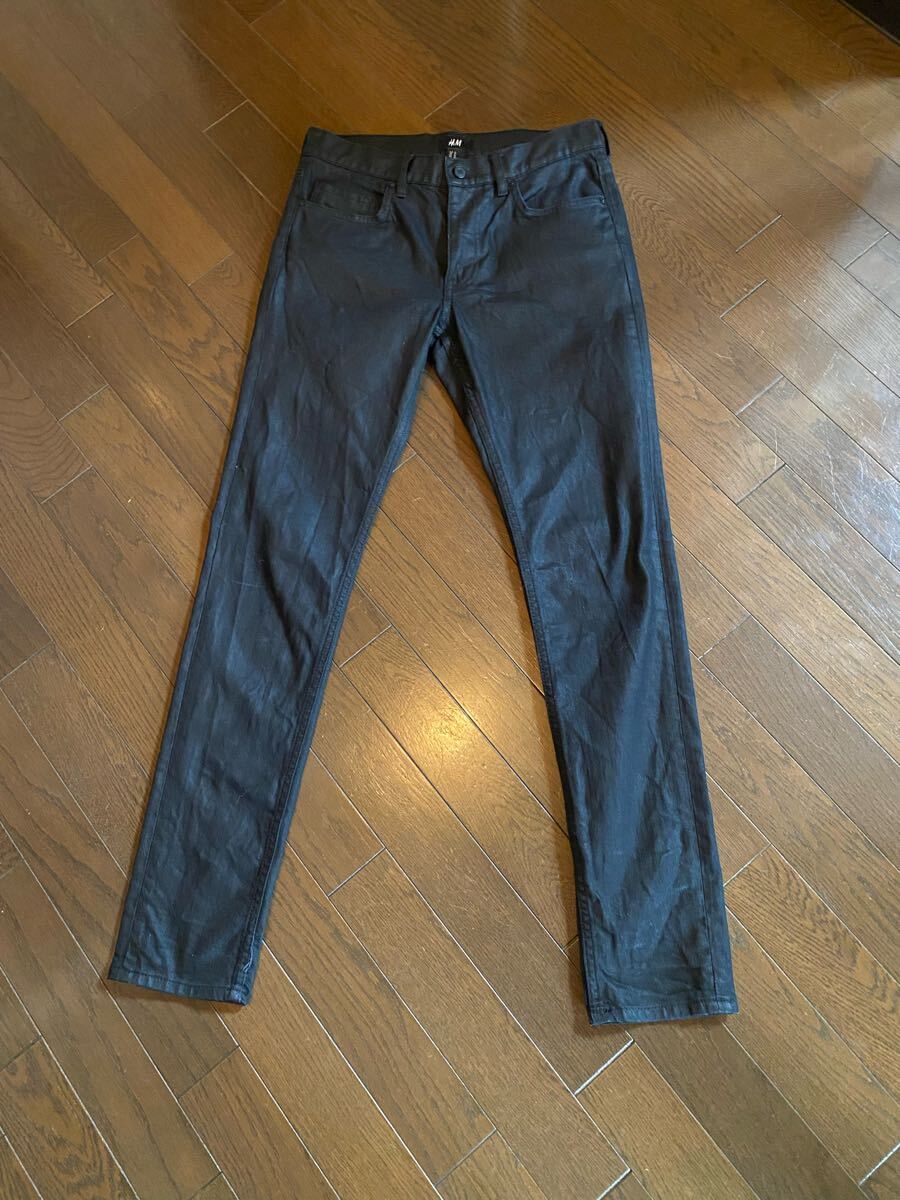 - H&M超スキニースリムタイト激細身デニムジーンズパンツブラック美脚さん!足細さん!ロックの人!ストレッチメンズレディースユニセックス