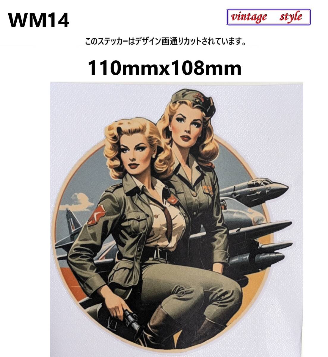 > WM14-4 女性兵士 レトロスタイル ノーズアート ミリタリーガールステッカー ミリタリー 軍 アーミー ステッカー シール デカール