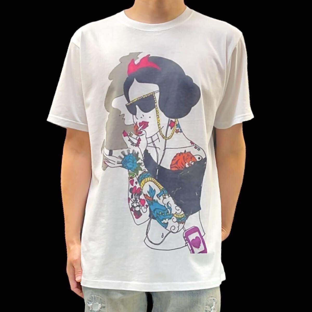> 新品 ビッグプリント 白雪姫 サングラス タトゥー 煙草 スモーク 悪女 スノーホワイト プリンセス パロディ Tシャツ ユニセックス Mサイズ