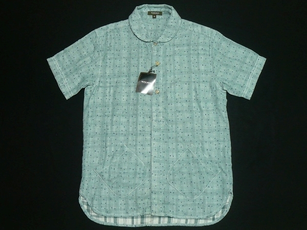 - 新品MITSUMINEミツミネ半袖ダブルガーゼシャツMグリーン丸襟\8690