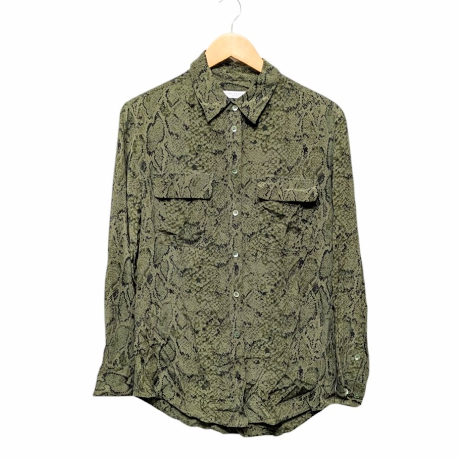 - EQUIPMENT FEMME エキプモンフェム 長袖シルクシャツ パイソン柄 グリーン系 11-051-570-0132-1-0 サイズ S